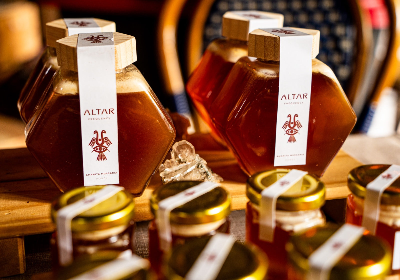 Unlock the magic with Altar Frequency's Amanita Muscaria Honey- a fusion of pure, organic, unfiltered local honey and the legendary Amanita Muscaria